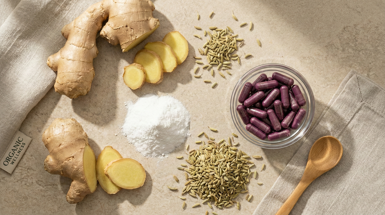 - Breakdown (Enzymes): Immediate relief by breaking down hard-to-digest foods (carbs, fats, and proteins) before they cause gas.