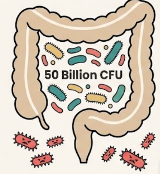 - Probiotic Blend (50 Billion CFU): Lactobacillus acidophilus, Bifidobacterium lactis, B. longum + 9 other strains.