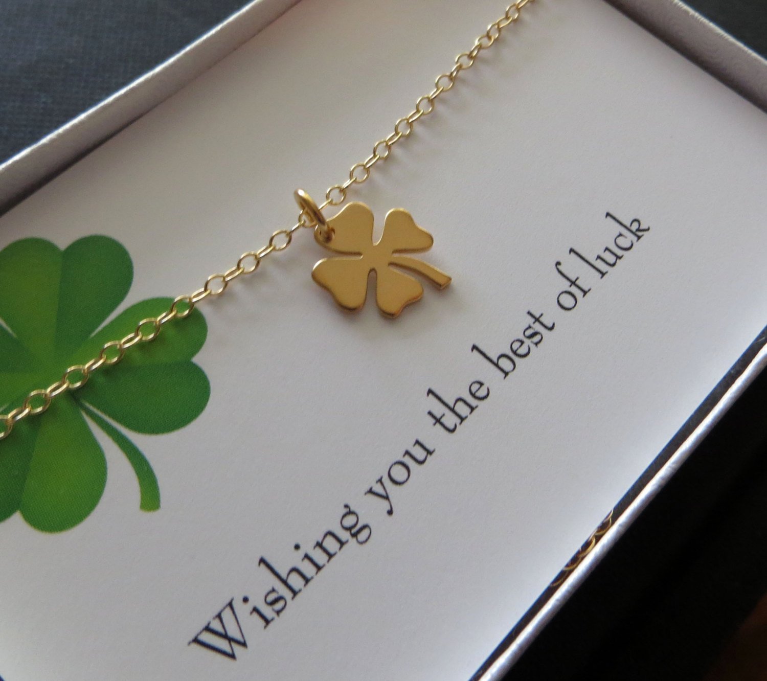 Lucky charmcc necklace, Shamrock, four leaf clover, best wishes gift, good luck gift for friends, co worker gift, you are my lucky charm